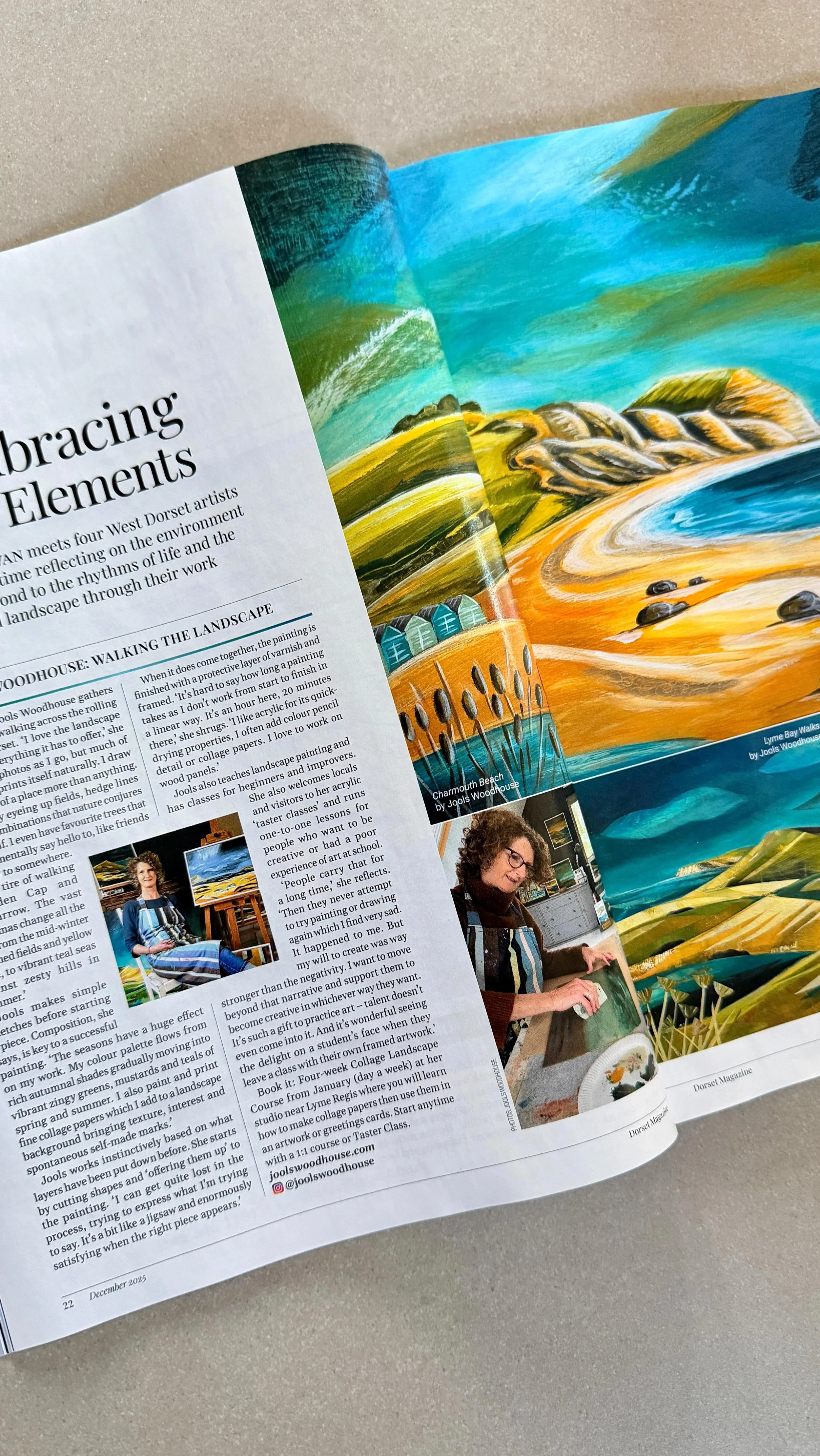 I live in the hills above Lyme Regis and create rich and vibrant landscapes of Devon and Dorset to enhance your home.