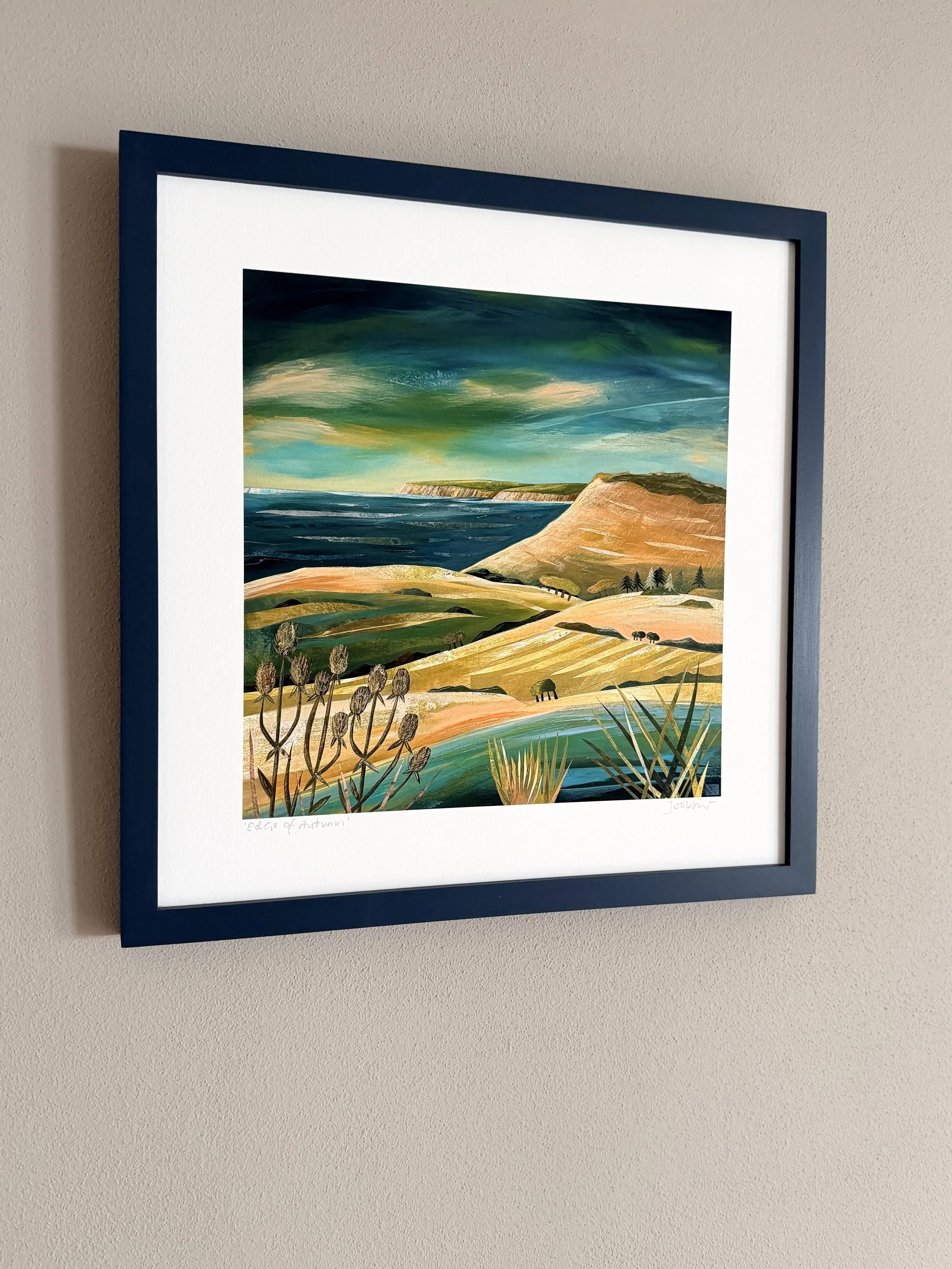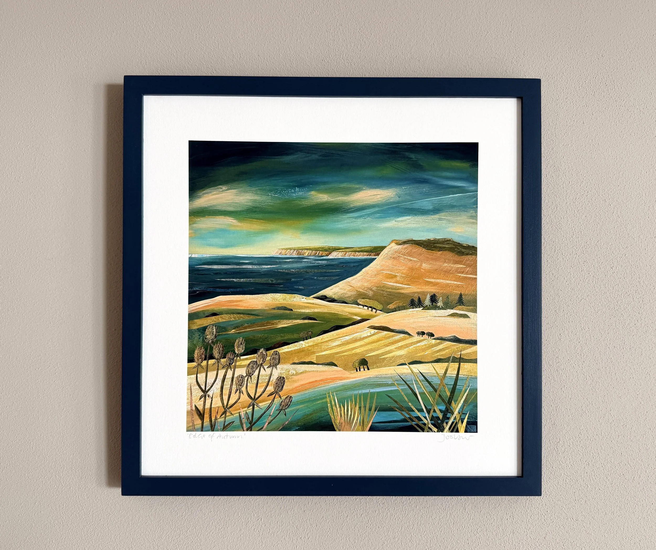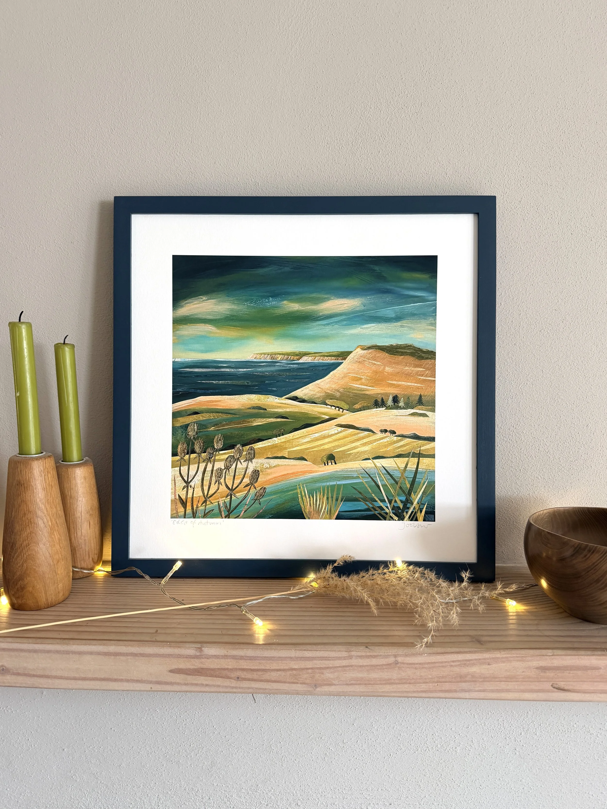 High winds of East Devon have been a huge inspiration as I experimented with capturing movement and wind in my paintings. Using new tools and techniques, a body of new work has come from my studio and this painting has made a lovely print.
